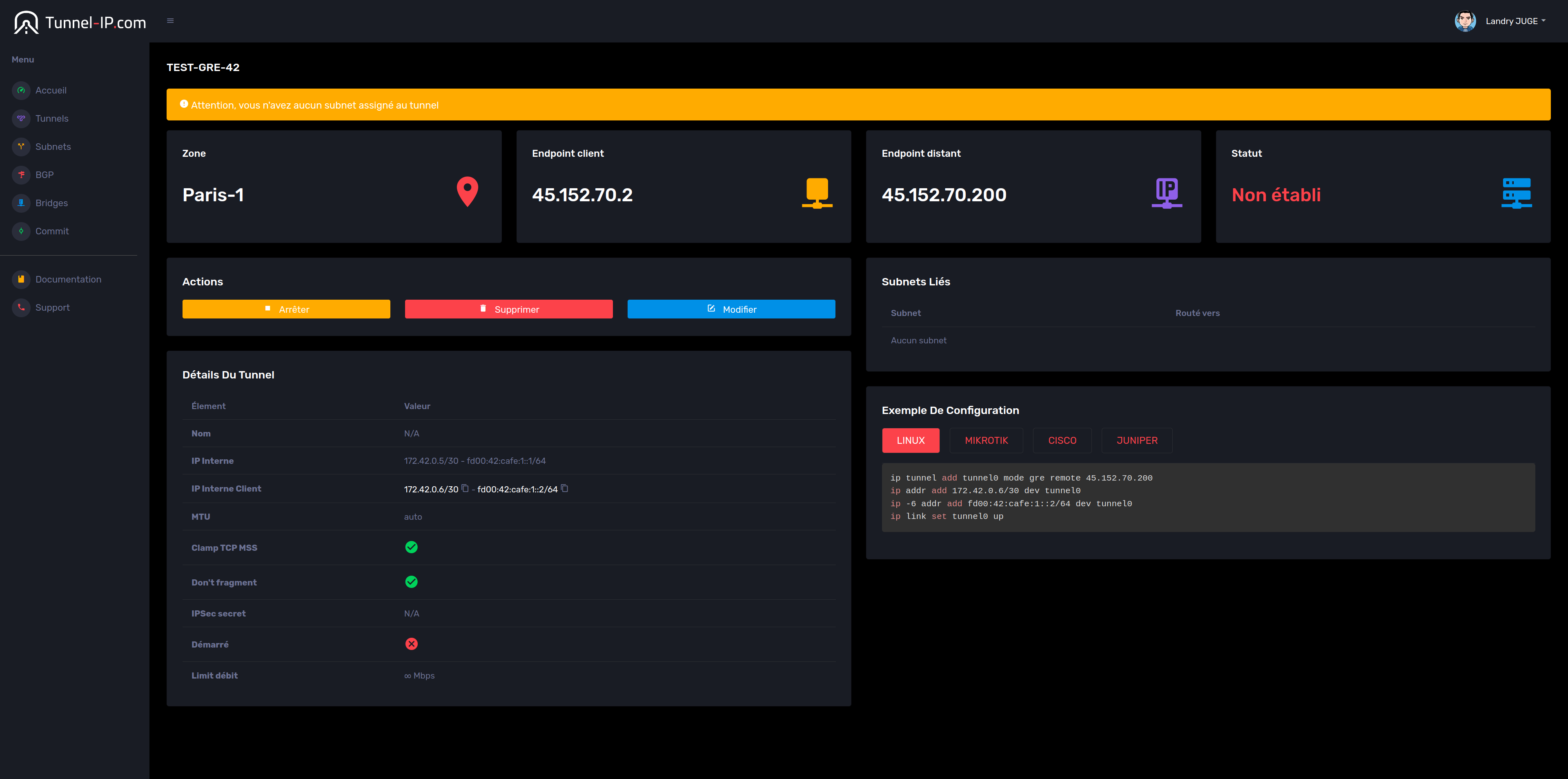 Pour configurer votre tunnel, des exemples de configurations sont donnés sur la page de votre tunnel